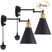 Industrial wall sconce with plug in cord wall lamp fixture, vintage plug in wall light swing arm wall sconce light in cord for bedroom, hallway 2 pack.