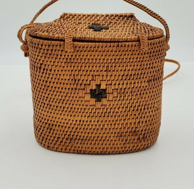 untuk "Wicker Woven Basket Purse : Sold Vintage Woven Basket Purse With Leather Accents Wise Apple Vintage : Antique vintage wicker woven cross body bag rectangle weaving straw basket."